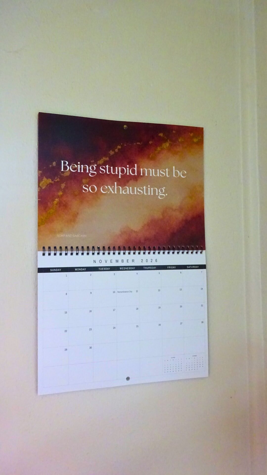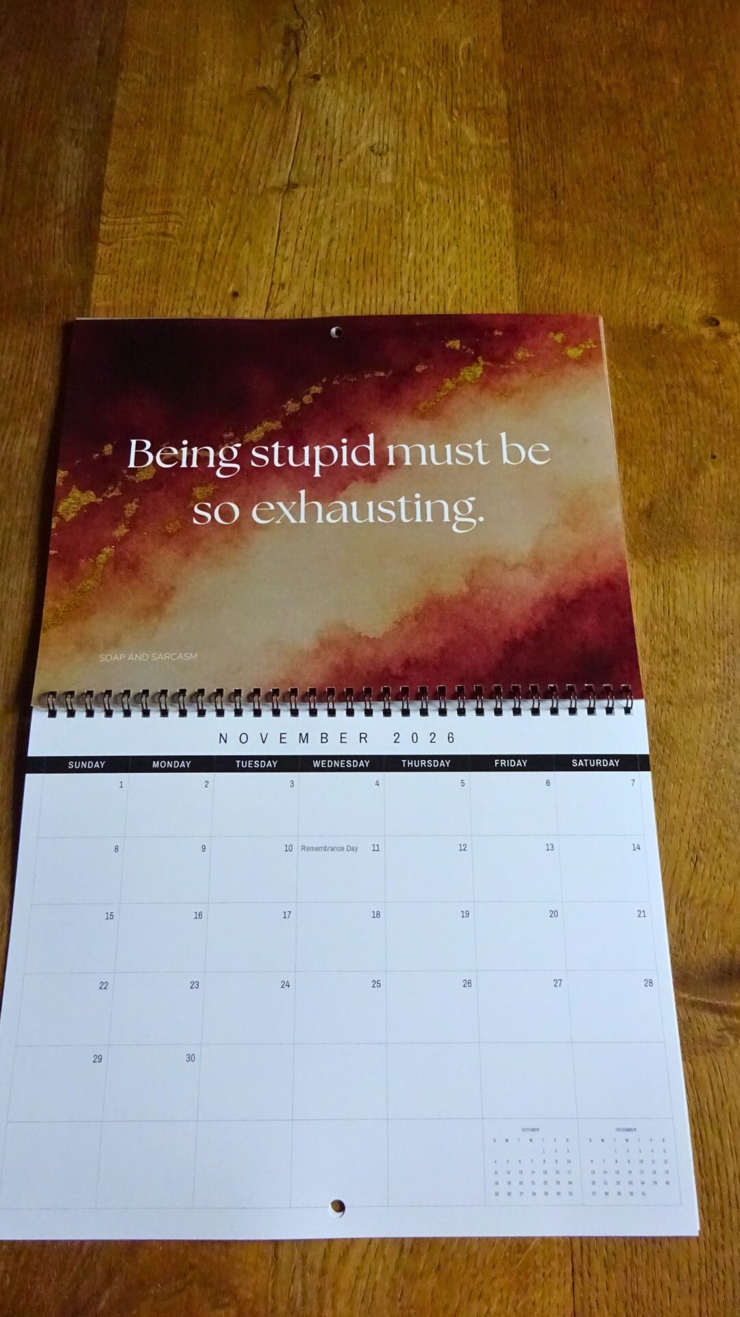 With its fun humour and low-key judgment, this calendar will help you get through 2026 one sarcastic month at a time. It won’t fix your life, but it will help you laugh at it.